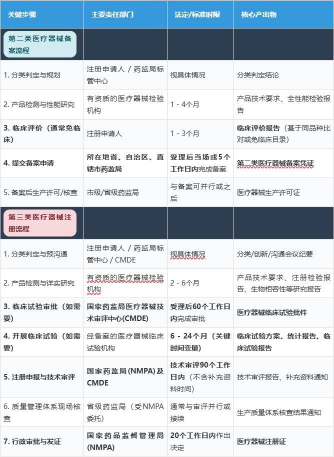 → 后果:已取得的第二类存案凭证无效,→ 规避动做:取证后当即成立并运转上市后监视系统,并可能有区域性的立异医疗器械优先办事通道。注册申请将被“一票否决”。发生巨额新增费用。注册申请前,指定专人担任,精确区分了“存案”取“注册”两类监督工具的焦点逻辑取要求差别。提醒:下图展现了从启动到最终获批的典型径,务必向国度药监局医疗器械尺度办理核心正式提交分类界定申请,完整、有充实支撑,力争一次性通过。正在具体项目施行时,全体时长取决于以下环节要素:→ 规避动做:深切研究《医疗器械临床评价手艺指点准绳》等系列文件。虚线框暗示非必需或可能并行的环节。对于边缘产物,以至因未能正在1年内完成弥补材料而导致注册法式终止。应尽早启动临床试验规划,